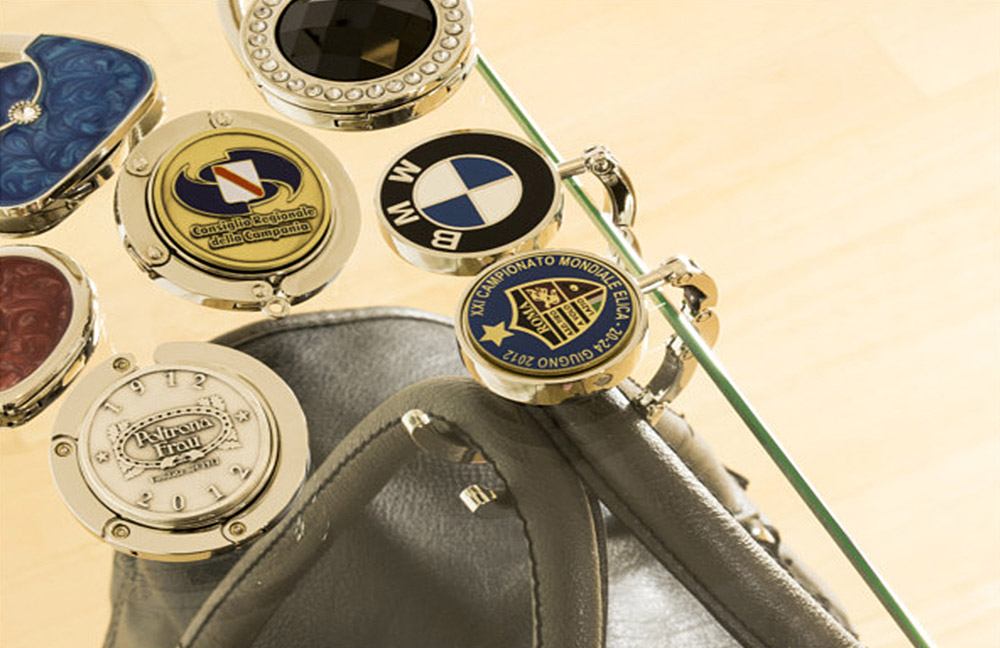 Non i soliti portaborsa standard pubblicitari, ma articoli realizzati e coniati completamente sulla base del vostro progetto (la vostra grafica viene impressa nel metallo stesso).