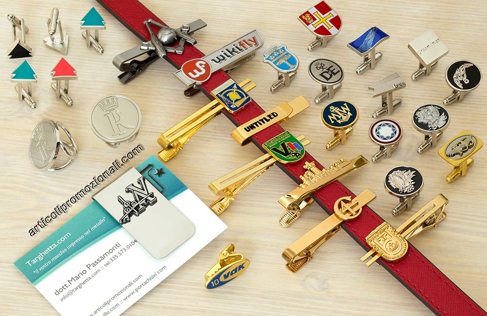 Produzione e vendita di gemelli da polso, fermacravatta su misura e fermasoldi di altissima qualità.